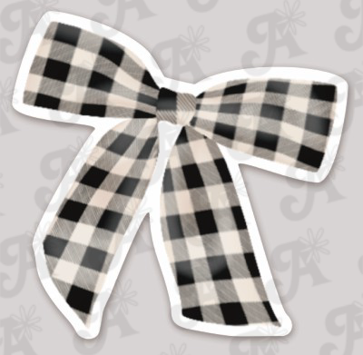 Elevate your style with this black and white gingham bow sticker. Waterproof vinyl construction keeps it looking fresh on laptops, water bottles, and more. Durable, fade-resistant, and easy to apply—the perfect way to add preppy charm to anything you own.