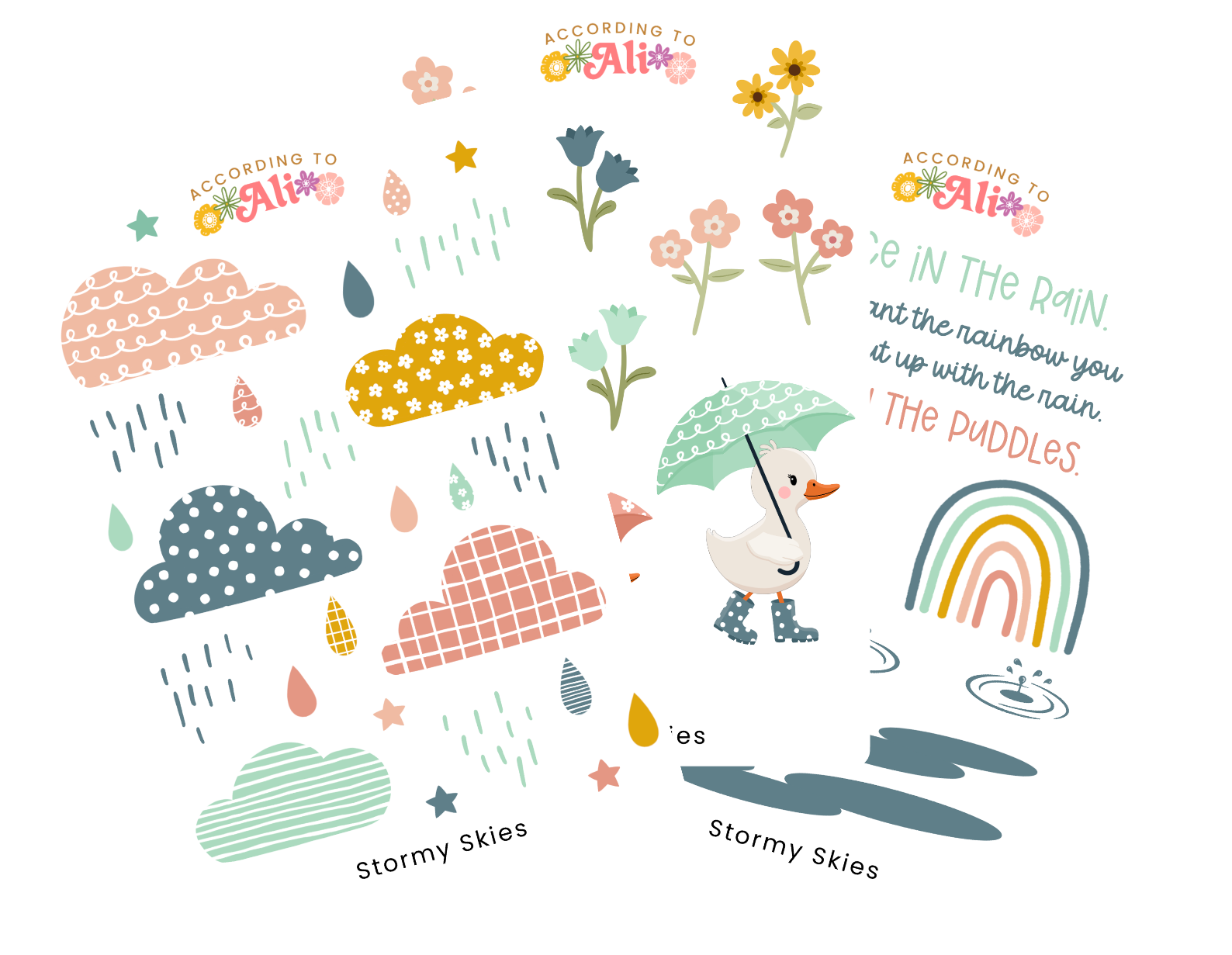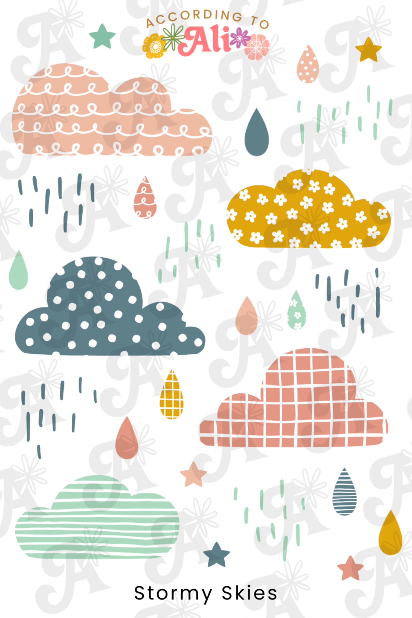 - rain themed stickers.